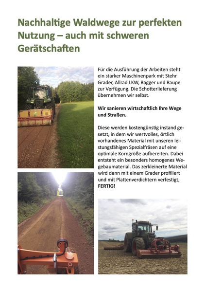 können wir Ihnen von der Planung über den Bau bis zur Instandhaltung den perfekten Wald- und Feldwegebau anbieten.